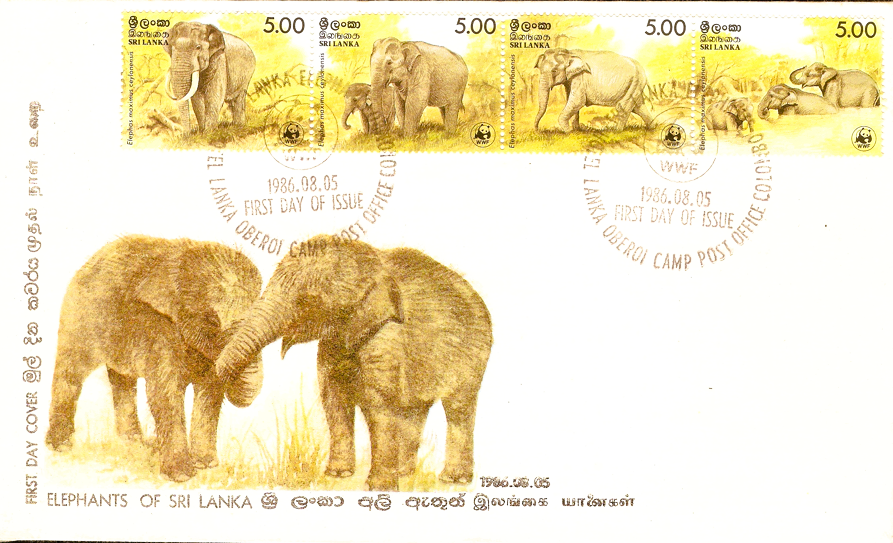 In 1986, when Prince Philip, spouse of Queen Elizabeth II, was serving as the President of the World Wildlife Fund (WWF), Mr. Gamini Ratnavira collaborated with the WWF to design a set of four stamps featuring Sri Lankan elephants to support the major elephant conservation program organized in the theme "Let them Live".