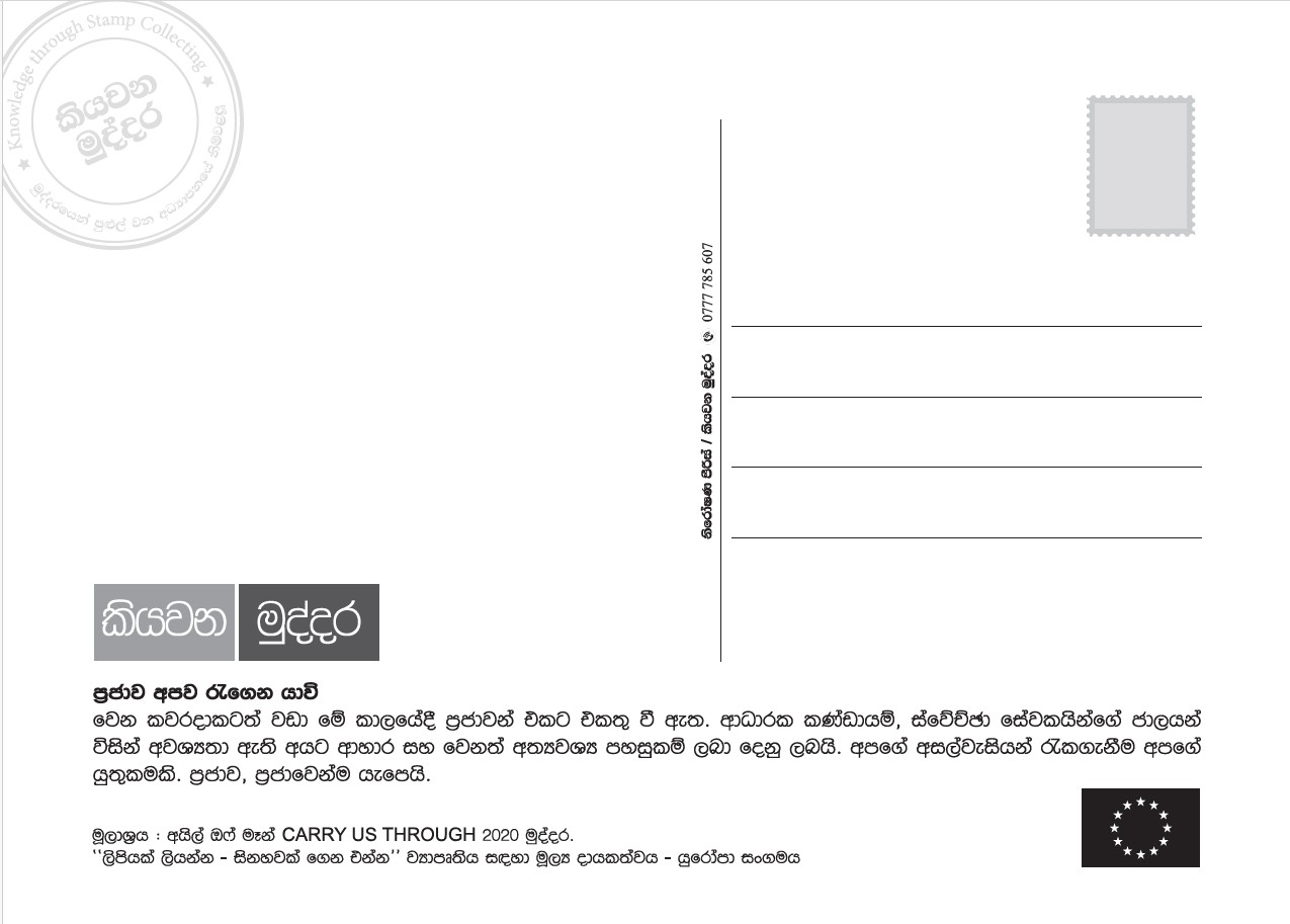 “ලිපියක් ලියන්න .. සිනහවක් ගෙන එන්න” ව්යායාමය ප්රජාව සැමවිටම අපව රැගෙන යන බව අපට මතක් කර දෙන, බොහෝ උණුසුම ගෙන යන සරලතම සද්ක්රියාවකි. ඒ සඳහා පිළියෙළ වූ මේ සමග ඇති තැපැල්පත, අයිල් ඔෆ් මෑන් තැපැල් කාර්යාලය මගින් අර්බුදකාරී කාලයන් තුළ දක්නට ලැබෙන කරුණාව, එකමුතුකම සහ ධනාත්මක බව සැමරීම සඳහා කළ මුද්දර අතුරින් එකක් වූ "ප්රජාව අපව ගෙන යනු ඇත" යන වාක්ය ඛණ්ඩය සහිත මුද්දරය අනුසාරයෙන් කල "කියවන මුද්දර" අපගේ නිර්මාණයකි.